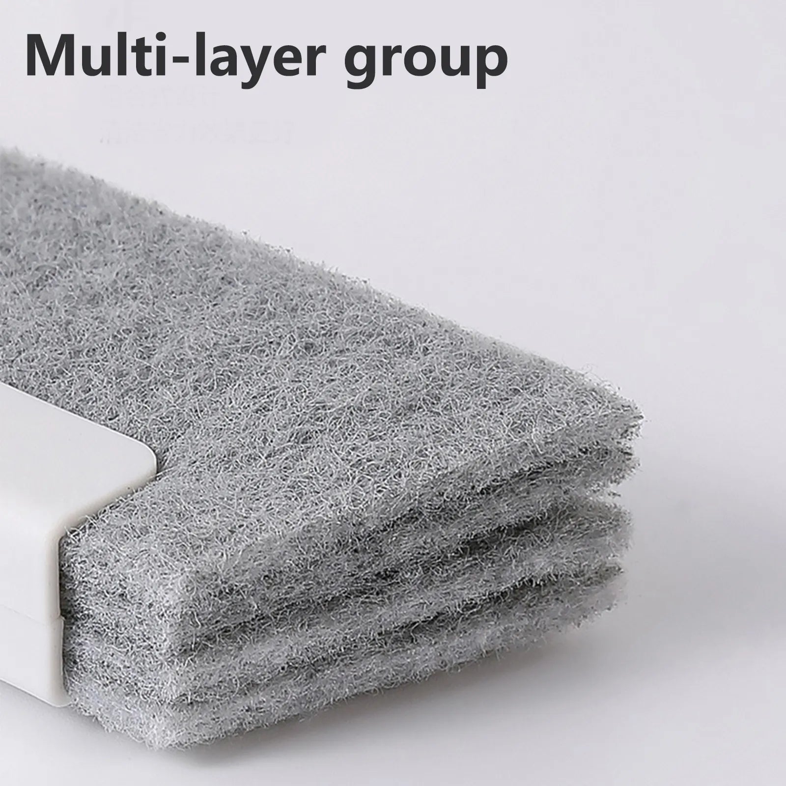 A 2-in-1 glass window slot brush features a dual-sided design with a soft brush and a rubber squeegee for versatile cleaning of dead corners and flat surfaces.