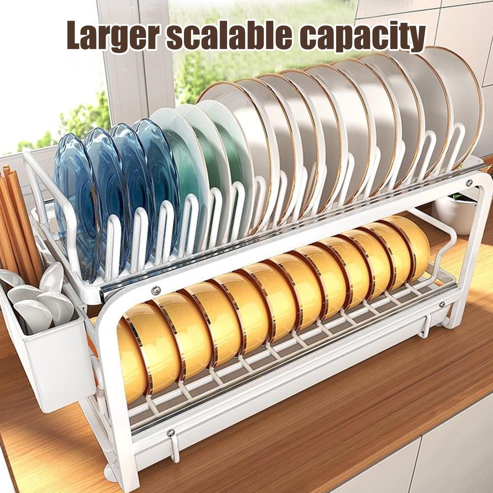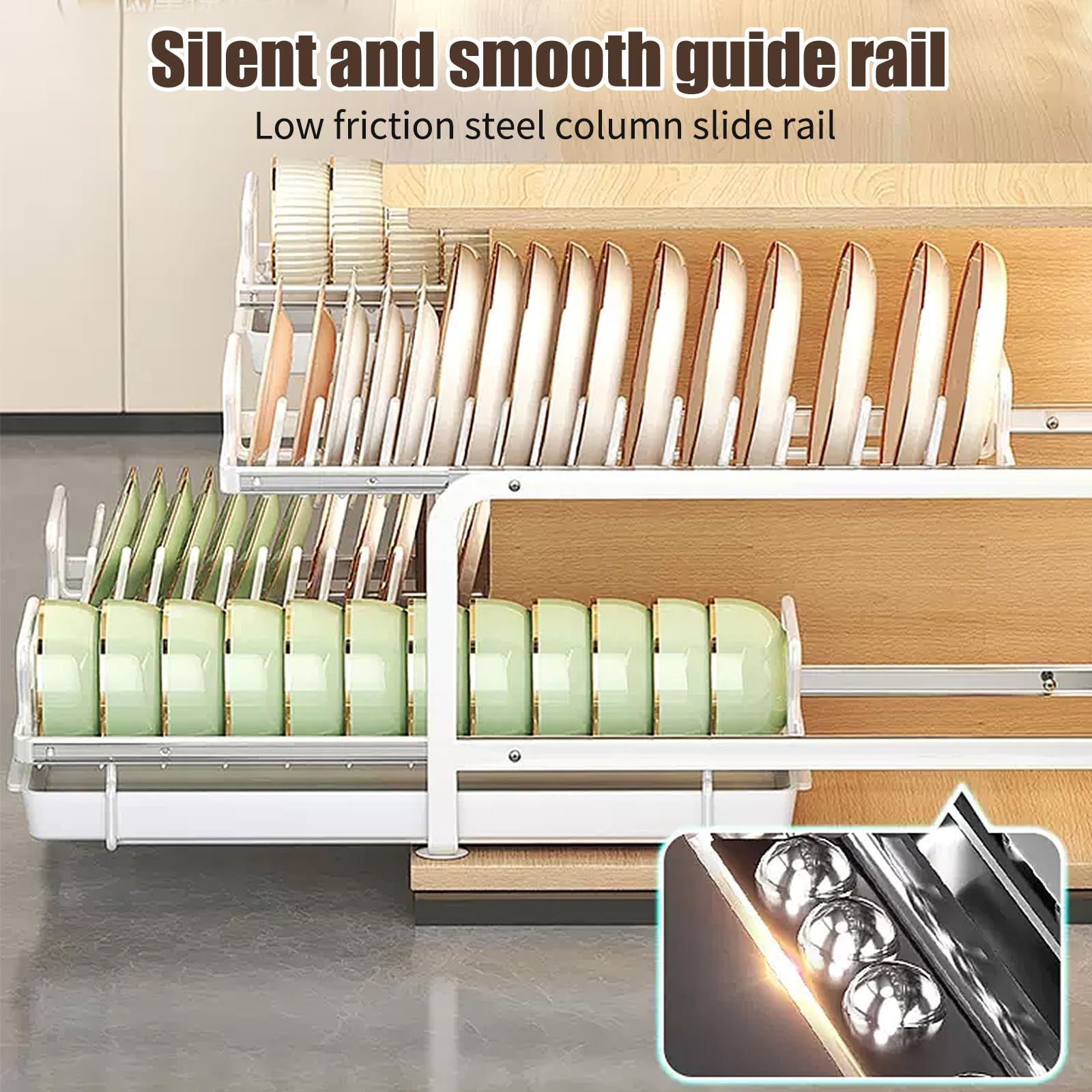 -Kitchen Drawer with Dish Rack: Our slide out cabinet drawers equipped with dish drying divided rack and pull out drainage tray, which can perfectly organize your bowls and plates.The rack can be removable so you can use as per your cabinet storage needs.