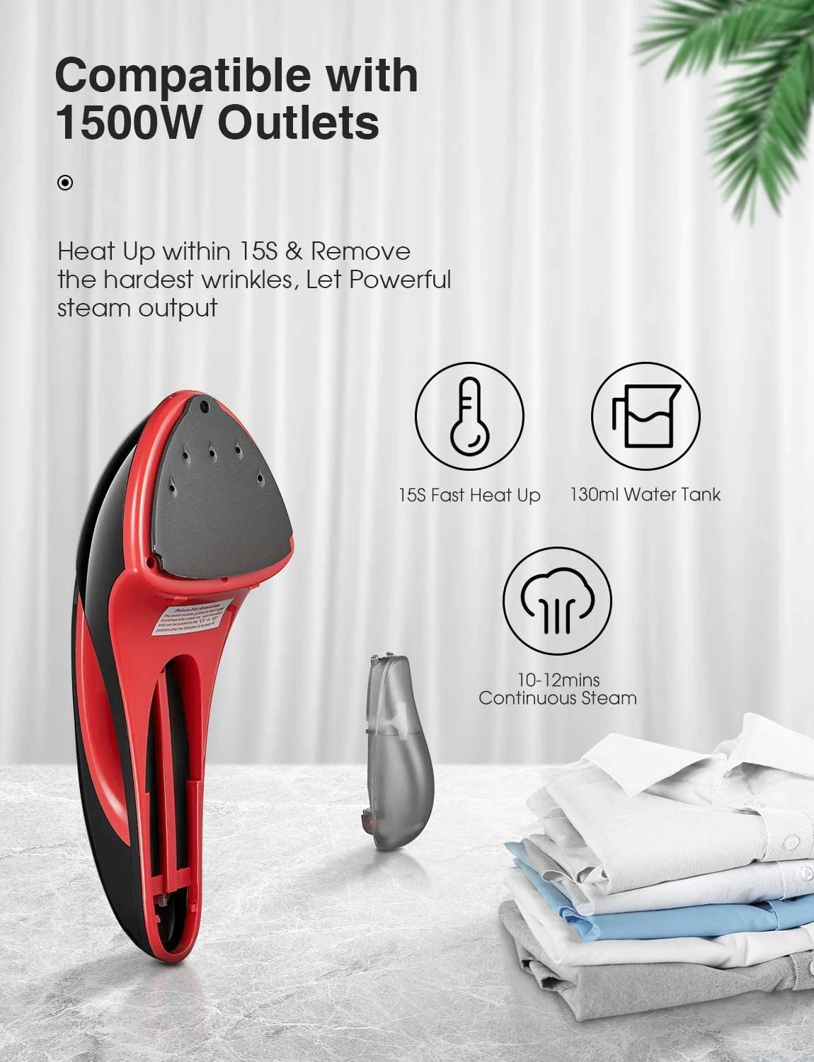 With Fast-Heat technology. Preheating takes only 15 seconds, while other irons need about 30S ~ 60S; The fast heating and the large capacity water tank is capable of producing up to 14 minutes of continuous steam, removing all creases at once, minimizing or no water loss, thus saving a lot of precious time.