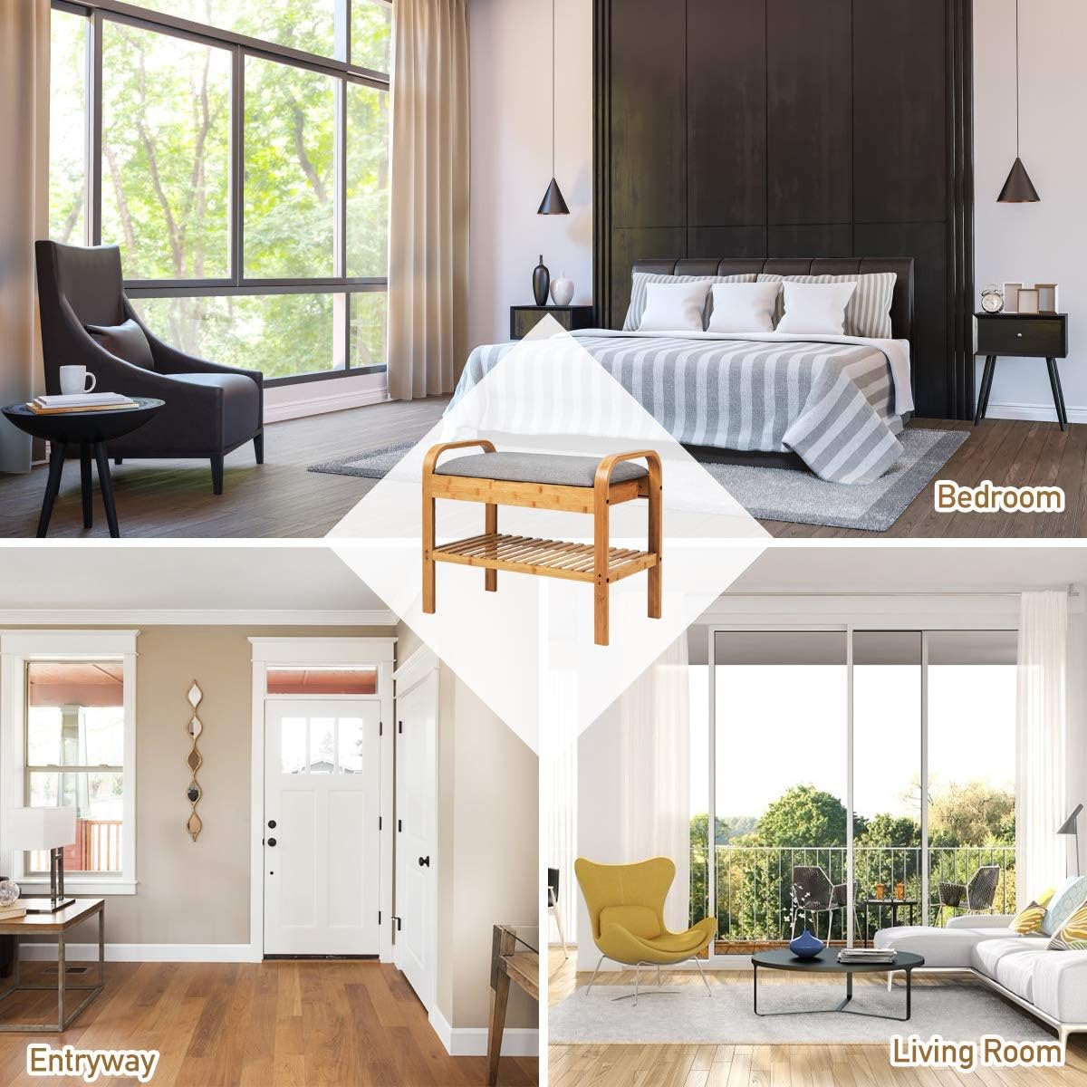 ?Thick & Comfortable Cushion?: The cushioned seat is filled with high-density sponge, which has good elasticity for sitting to change shoes. And covered with breathable grey linen, the seat is comfortable to sit together and will not show the dirt.