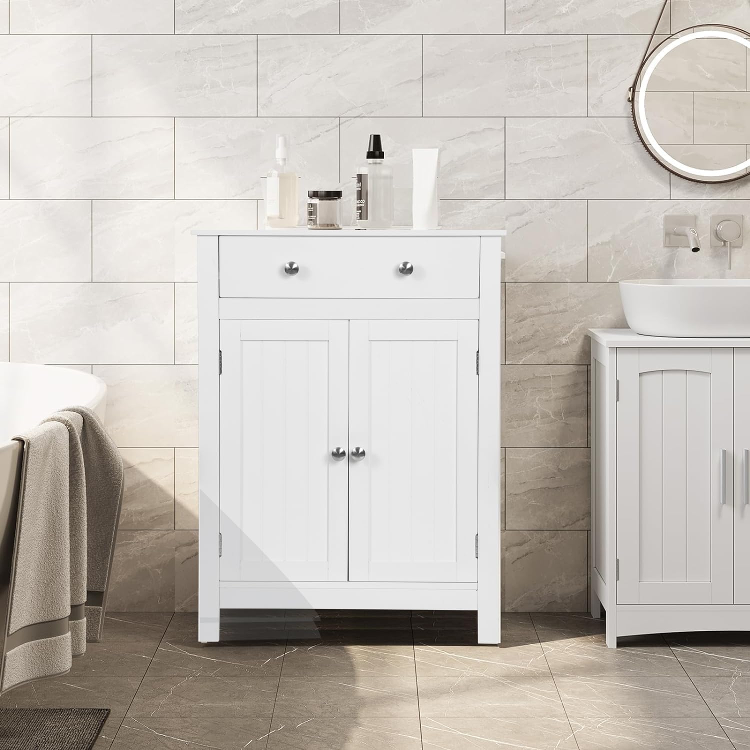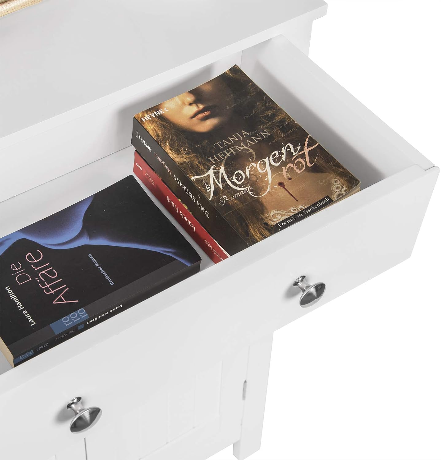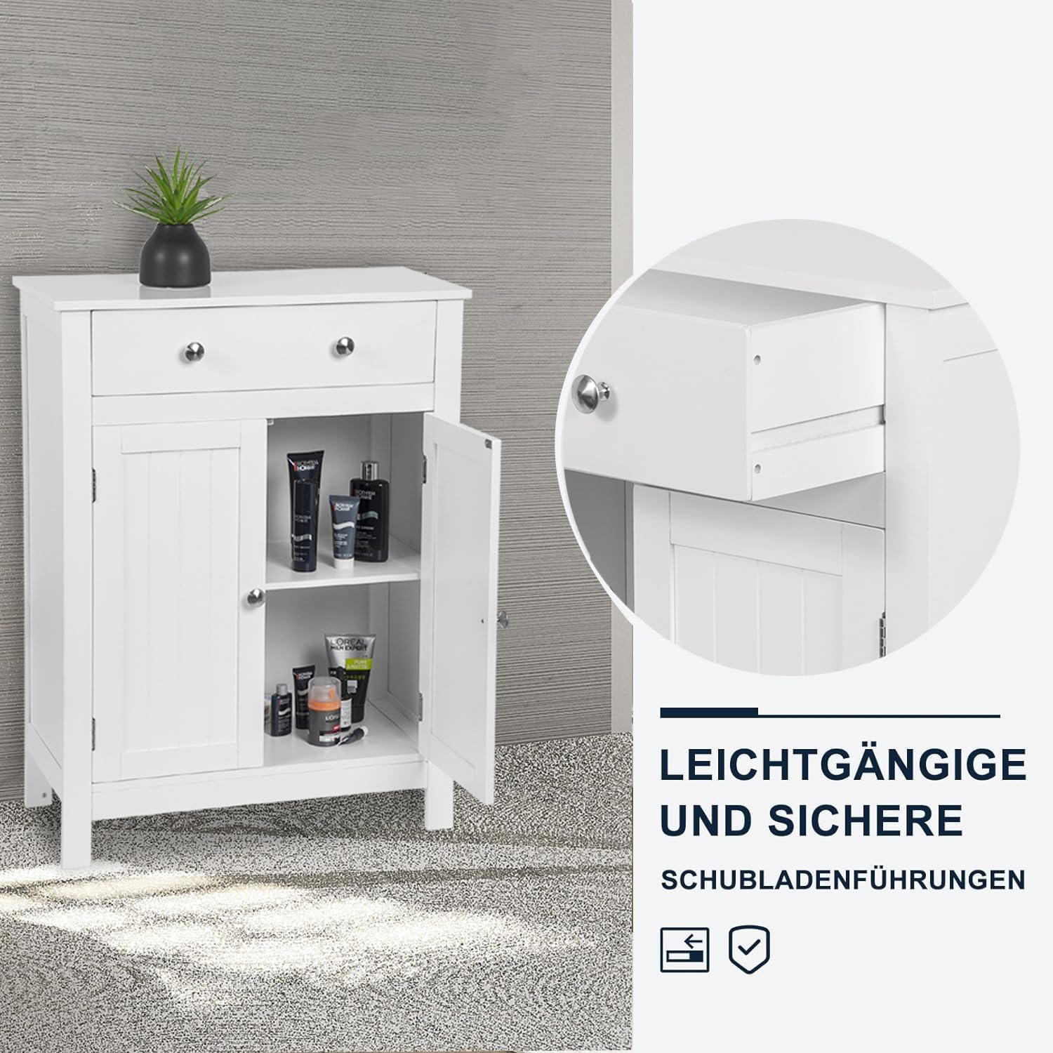 Bathroom cabinet: the cabinet has a simple country house style and an elegant, white colour. It is suitable for almost all rooms, such as the bathroom, bedroom or kitchen. It can be easily combined with other furniture.