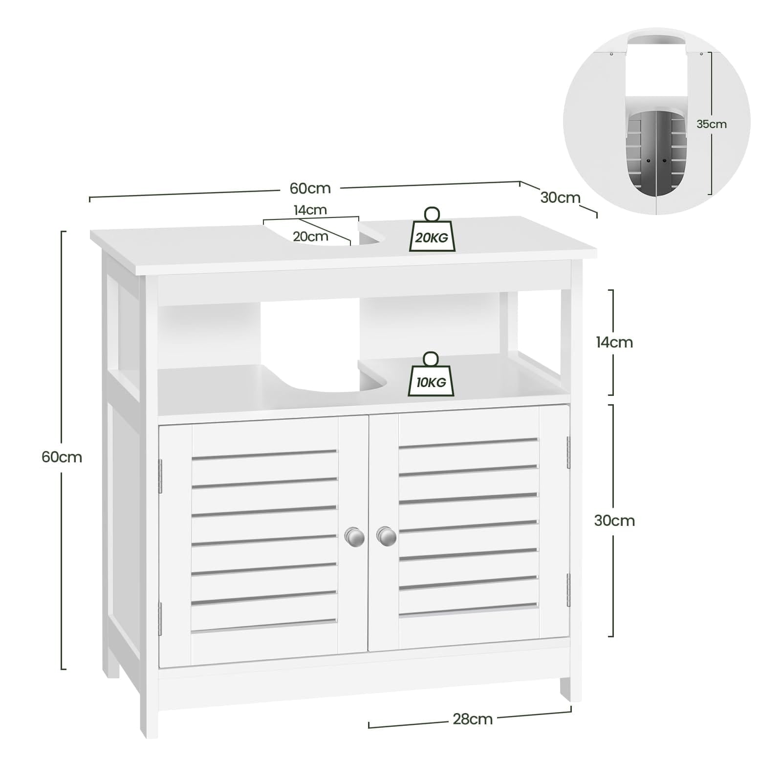 Bathroom Cabinet Under Sink Floor Cabinet MDF,Washbasin Cabinet Sink Cabinet 60x30x60cm,White