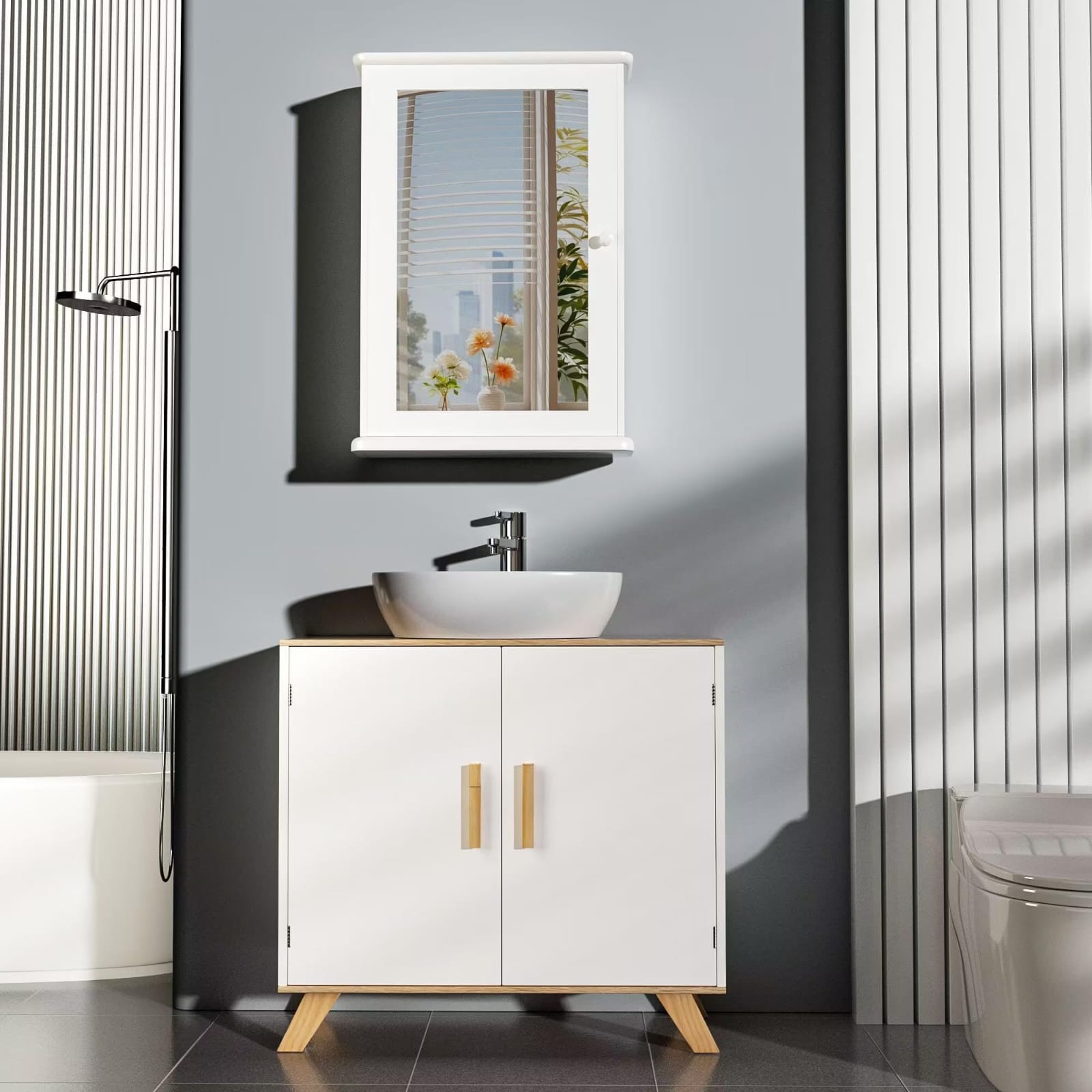 Bathroom Cabinet with Mirror Wall Cabinet Bathroom Storage Furniture MDF 42x12x58.5 cm White