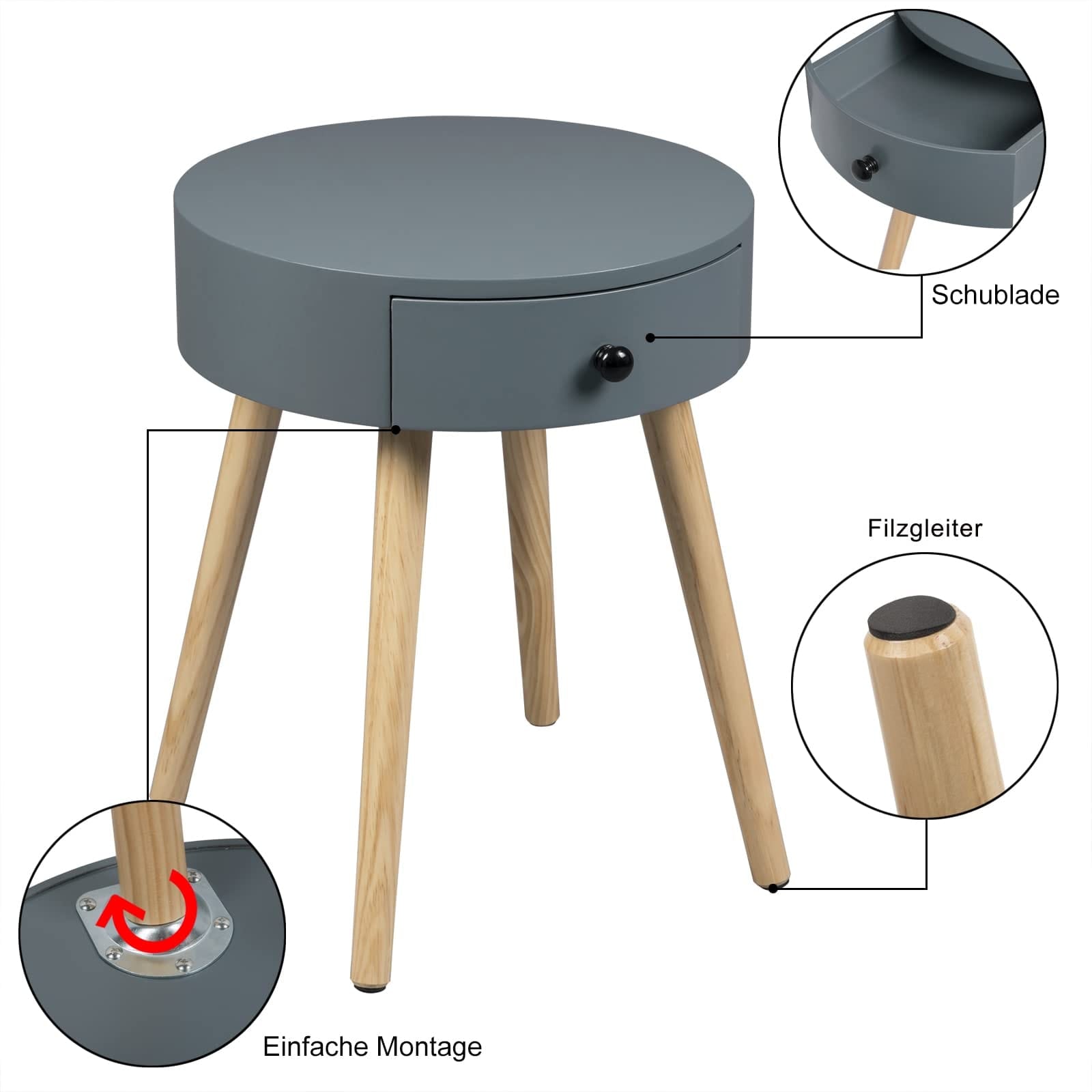 Bedside Table with 1 Drawer Side Table Nightstand Bedroom Bedside Unit Cabinet Grey 38x38x48cm