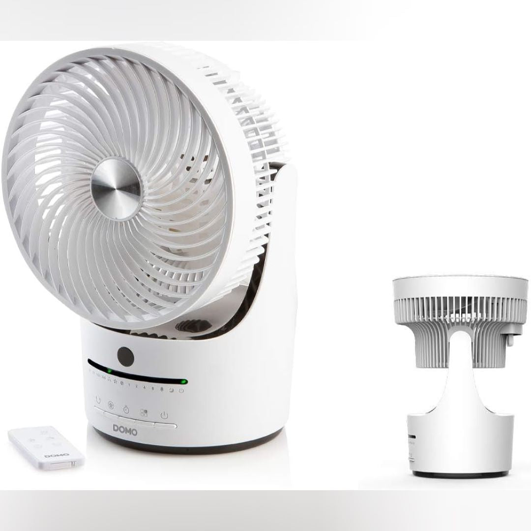 This small table fan with stable foot from Domo is more than a practical accessory for a pleasant climate on hot days of the year. If you want a pleasant cooling on hot days and are looking for a powerful table fan while looking for a beautiful look, this fan is very trendy. The fan is versatile with a 360° swivel function: whether as a cooling fan, as a small floor fan or as a classic table fan. You can choose between 4 vibration modes. The chosen position is recognized by the indicator light. The table fan measures 22.5 x 20.3 x 34 cm and the three wings are protected by a safety cage.