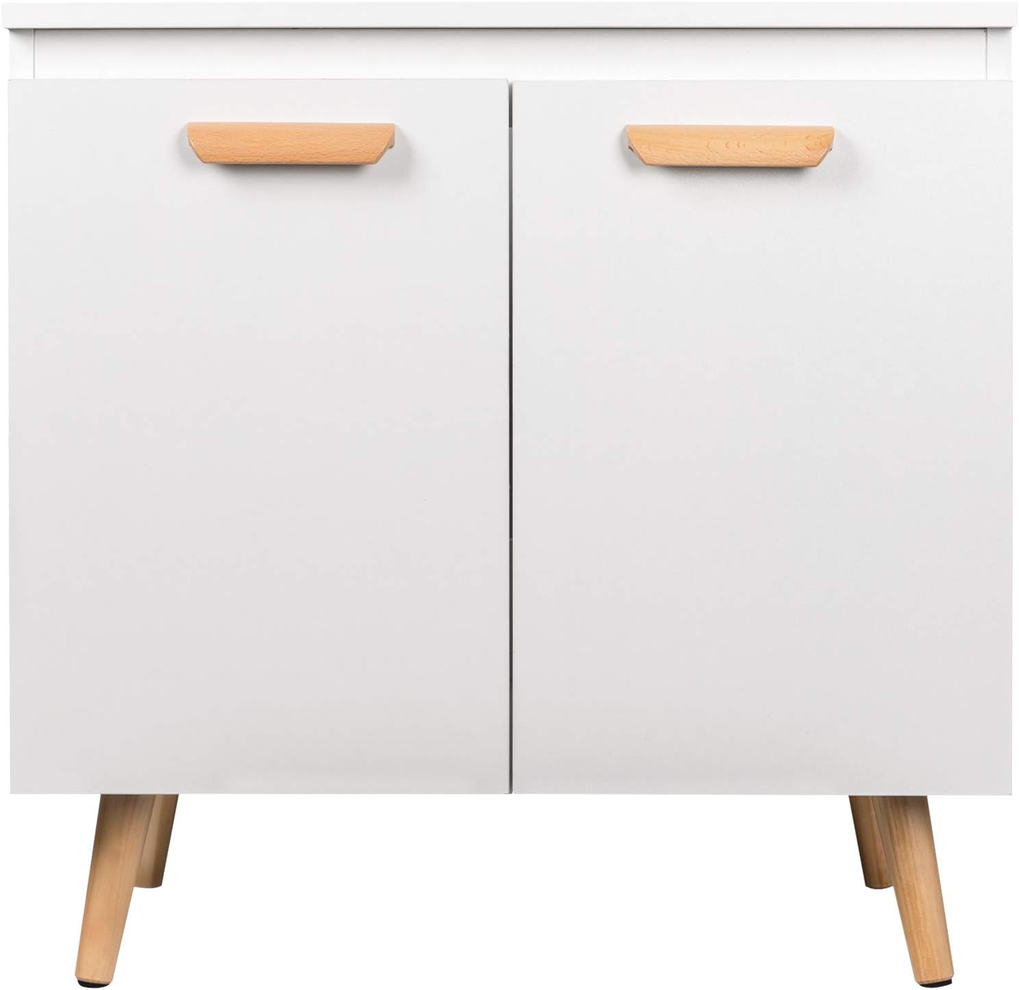 Reliable and moisture-proof material: ? The freestanding cabinet is made of E1 class particle board, it is moisture resistant and scratch-resistant, beautiful is durable. In addition, solid wood legs ensure the stability of the bathroom cabinet.