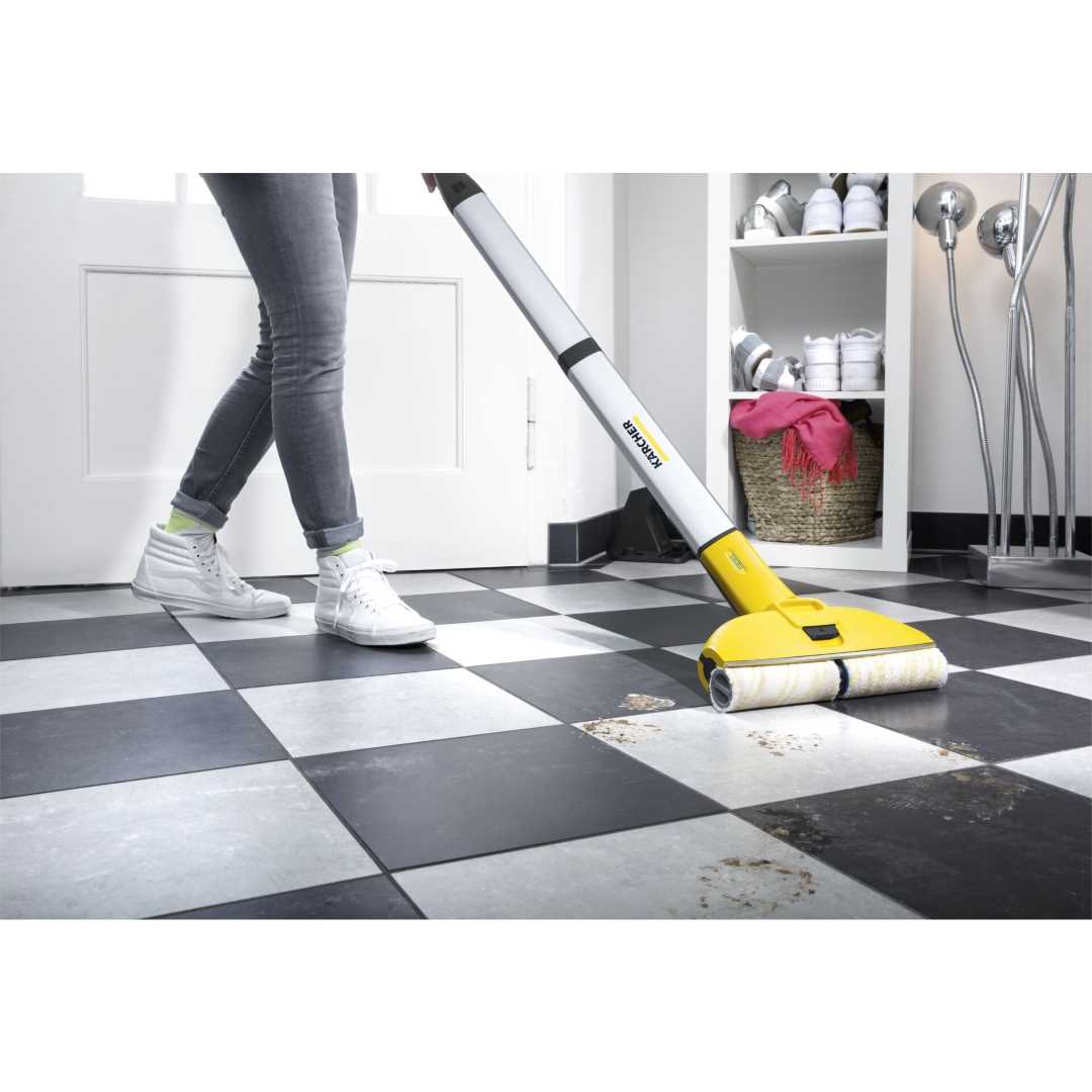 Lightweight and convenient, the Kärcher EWM 2 Electric Wipe Mop makes light work of wiping all your sealed hard floors, including laminate, wood, tile and stone. With no cables to worry about, you have complete freedom to clean all around the house, quickly and efficiently. Designed to let you clean right up to skirting boards and around furniture, this machine leaves your floors dry in just two minutes and gives you 20 minutes of powerful cleaning on one charge. As you move across the room, the EWM’s super-absorbent rollers pick up all of the dirty water and debris, it is then removed into a separate dirty water tank, meaning fresh water stays clean as it's fed onto the self-rotating rollers - much more hygienic than a mop and bucket. Add our specially formulated detergent to the clean water tank for even better dirt removal and a fresh beeswax or citrus scent. When you're done, simply store the machine on the docking station and pop the rollers into the washing machine to clean them ready for next time