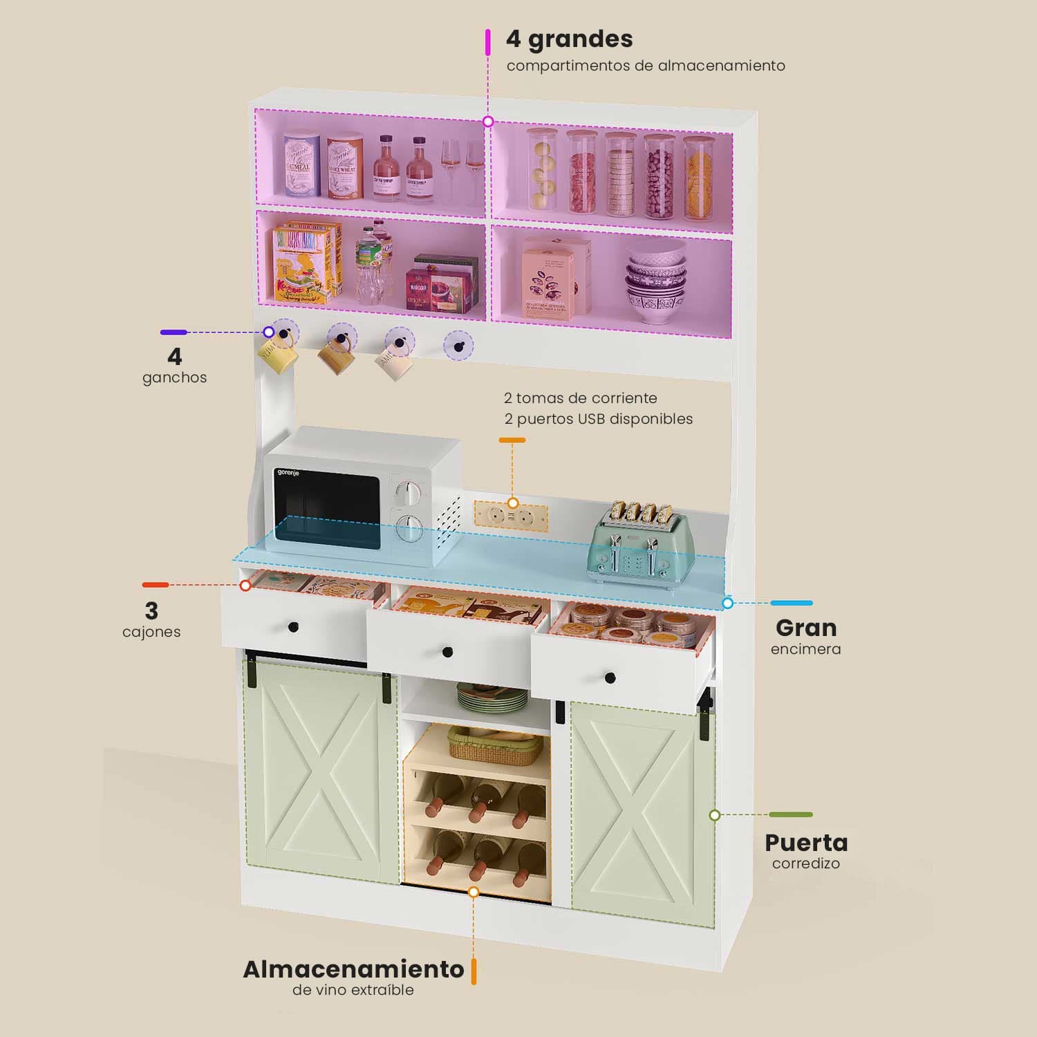 Organize your kitchen and create the perfect coffee bar or appliance station with this multi-functional kitchen cabinet from Sikaic. This all-in-one freestanding unit is cleverly designed with a variety of storage options and the modern convenience of a built-in power strip to declutter your space.