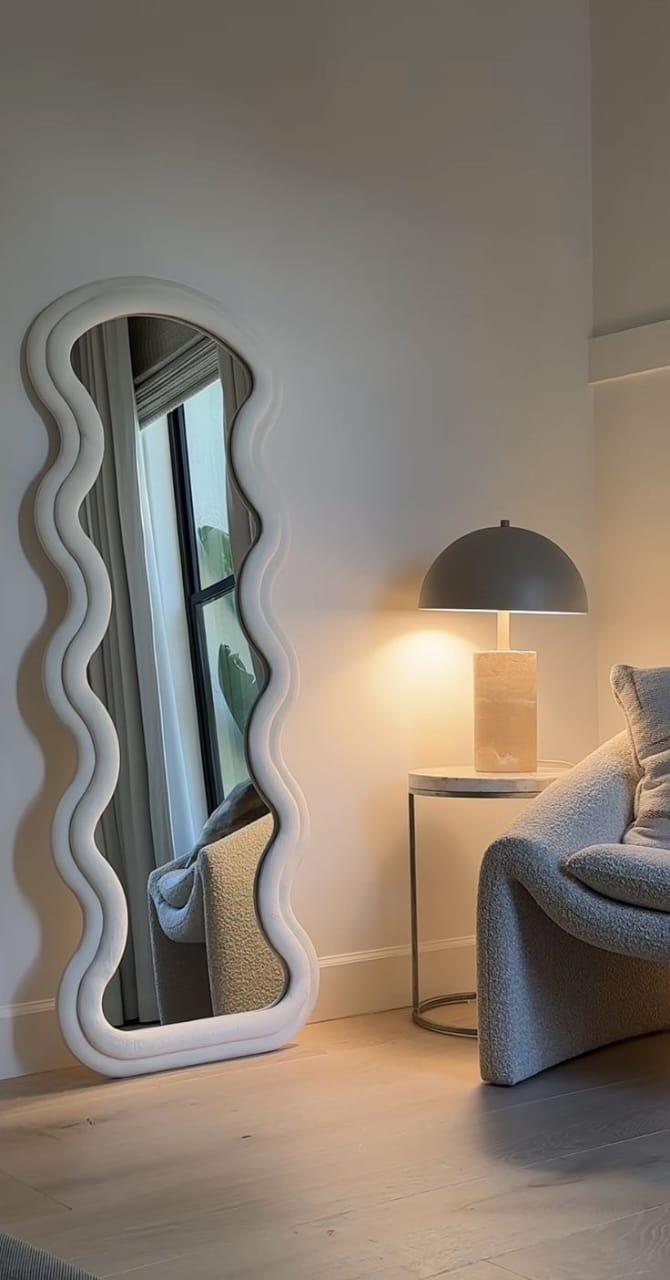 WAVY DESIGN: The shape of the full length mirror uses an irregular design. The wavy shape makes the entire mirror looks unique. It is very conspicuous in any space and makes your room look tasteful.