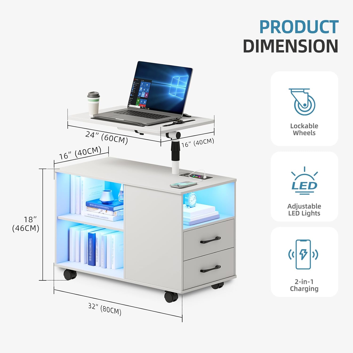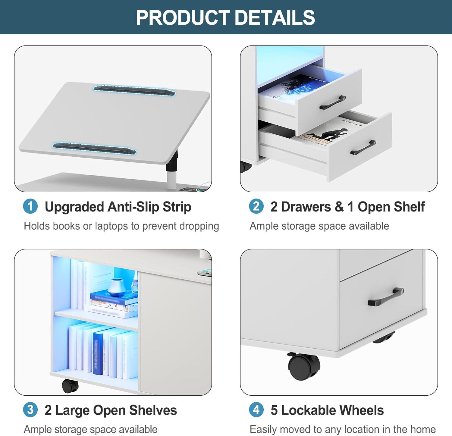 💪【Sturdy Rolling Workstation】 - The bedside table is made of thickened MDF board which ensures stability, and equipped with 5 lockable wheels for free movement, you can easily move it to the living room sofa, bedroom bedside, study room