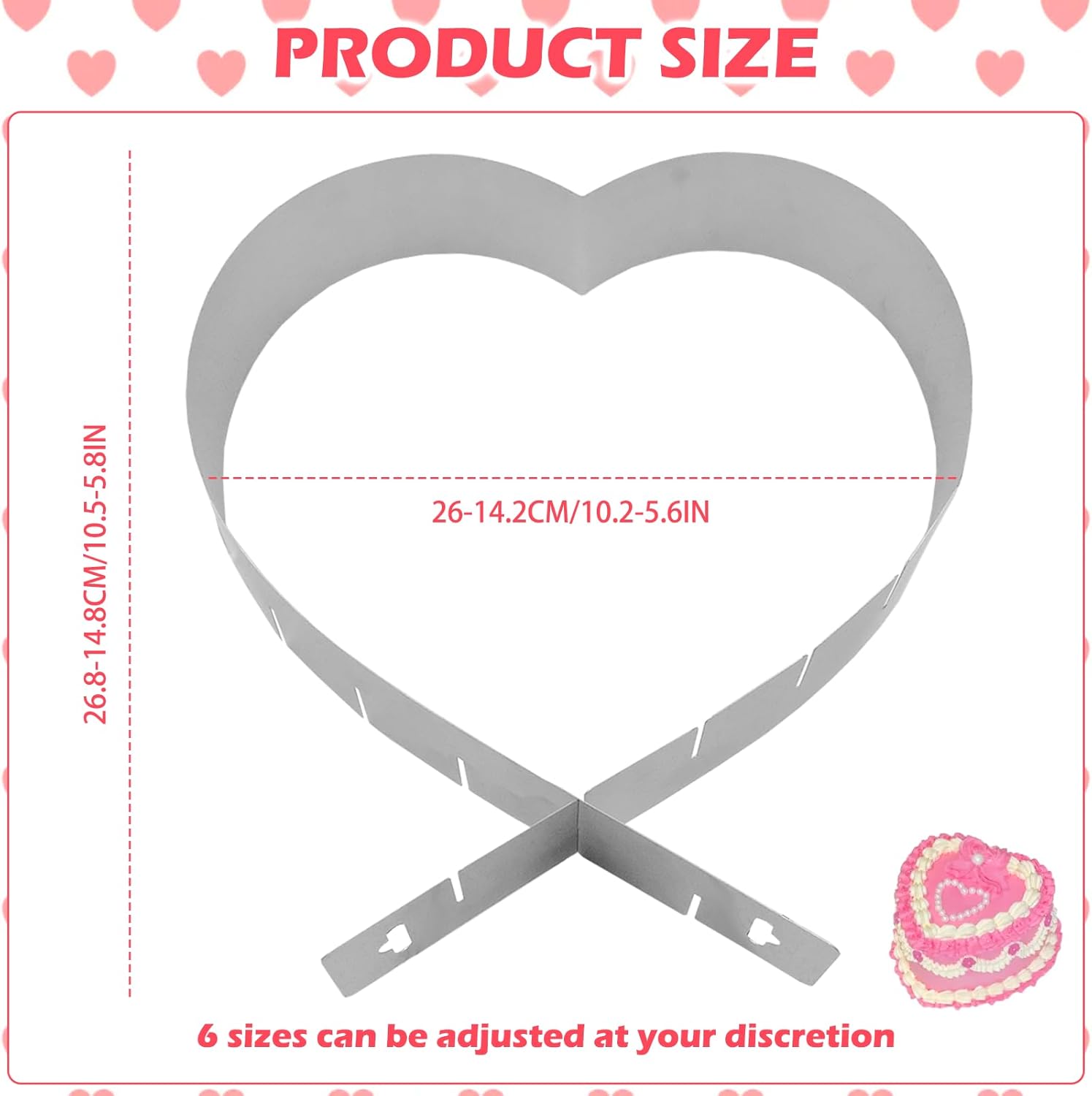 [15-26cm Flexible Adjustment]: The product features a unique adjustable design, allowing the heart shape width to freely stretch (from 15cm to 26cm), easily adapting to different sizes of cakes and pastry making needs.