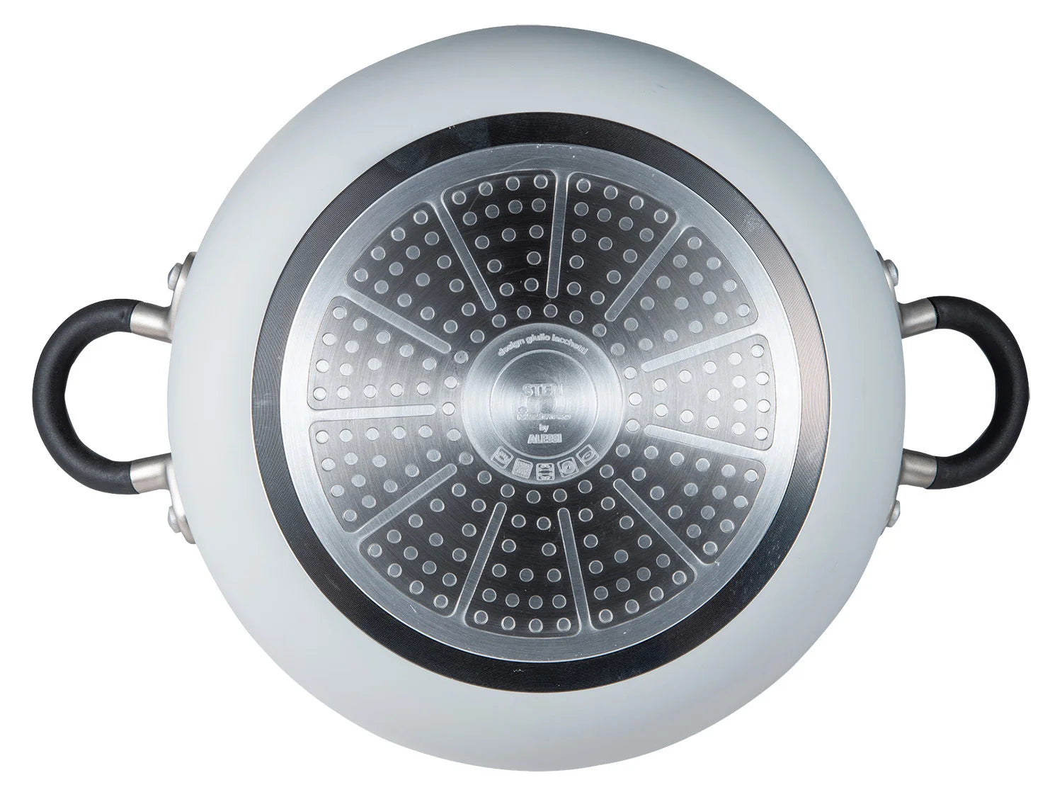 Turn your kitchen into a work of art with the saucepan from the STEN collection by Masterpro by Alessi. Create a unique atmosphere and experience cooking in a new and modern way. The saucepan is made of pressed aluminum, a lightweight material that guarantees rapid heat distribution. Thanks to the resistant Quantanium non-stick coating, with titanium particles, no food sticks to the pan and it is easy to clean. A high-quality, durable and affordable cookware for everyday use.