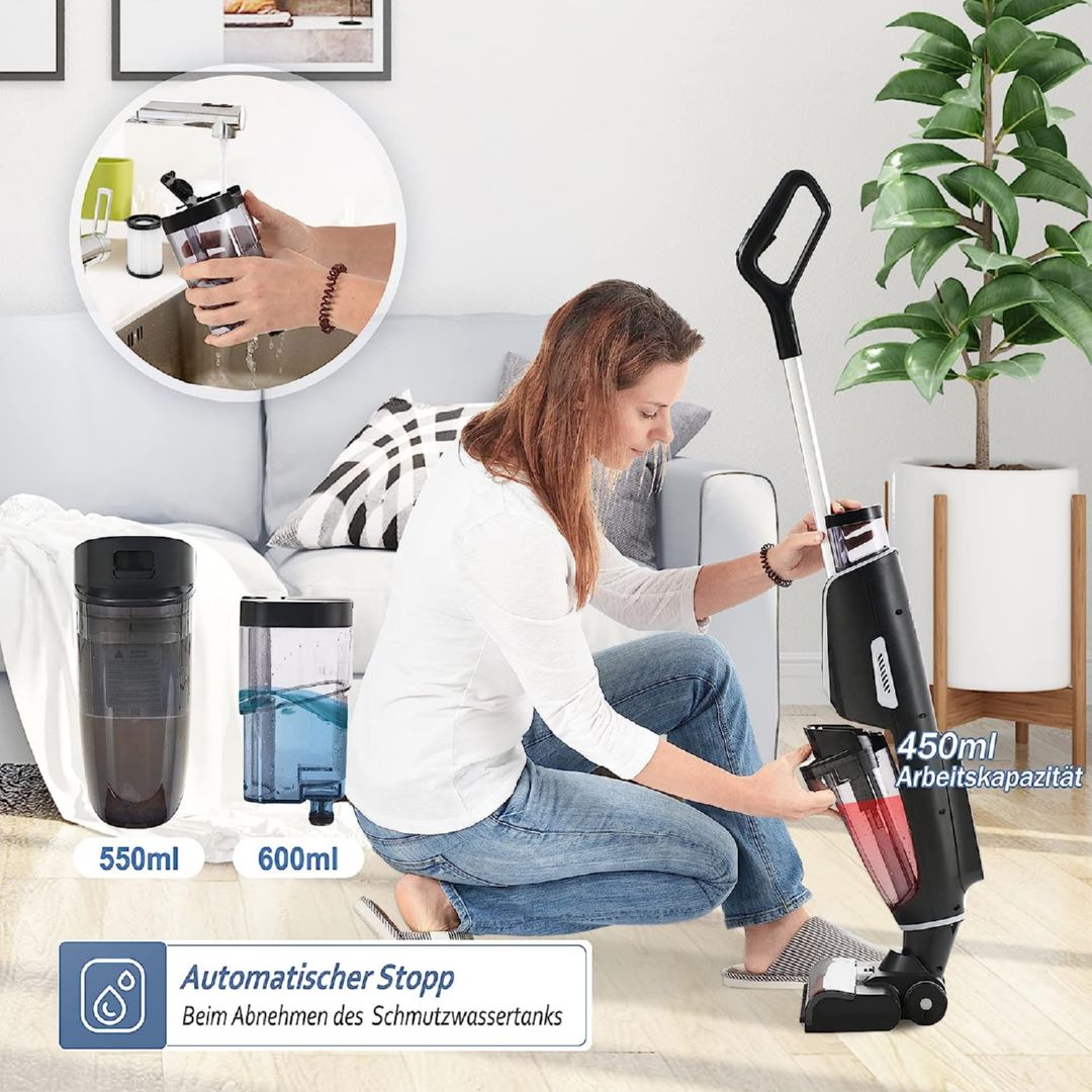 Two separate water tanks: To treat dirt and fresh water separately, this wet and dry vacuum cleaner has two separate water tanks to meet the requirements. 600 ml fresh water tank and 550 ml dirty water tank. The two separate water tanks are designed to be easily disassembled, which provides more convenience when using. In addition, the dirty water tank is equipped with a HEPA filter to keep the machine clean at all times.