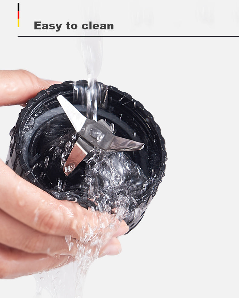 【Two Sporty Portable Bottles】- The 600ml travel bottles are equipped with airtight lids, with which you can easily carry juices or drink directly from the cup. The blender jar has a practical carrying handle to take it anywhere or hang it in your car or on your sports bag.