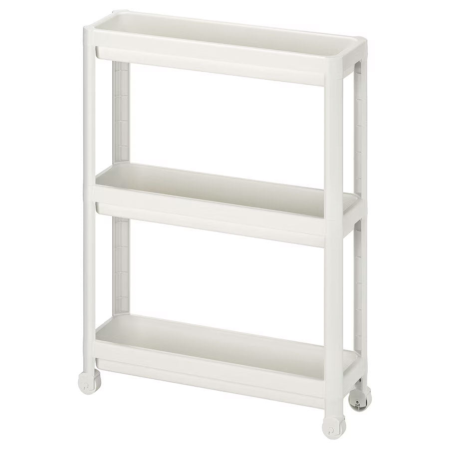 Ideal for use in the shower since the shelves have holes in the bottom to let water drain out.