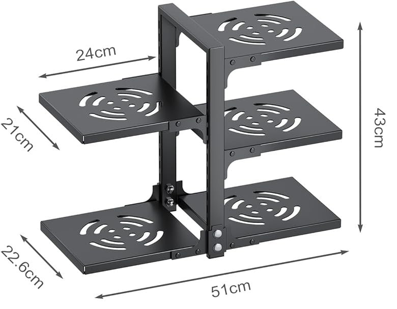 High-quality material: this adjustable cabinet shelf for storing pots, bowls and utensils is made of carbon steel, the overall robustness is fantastic. It does not chip, is waterproof and rust resistant and is very easy to clean.