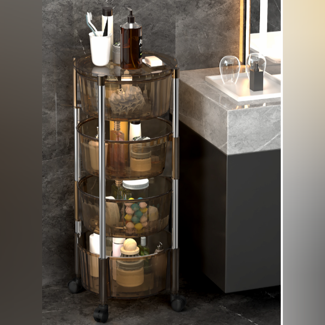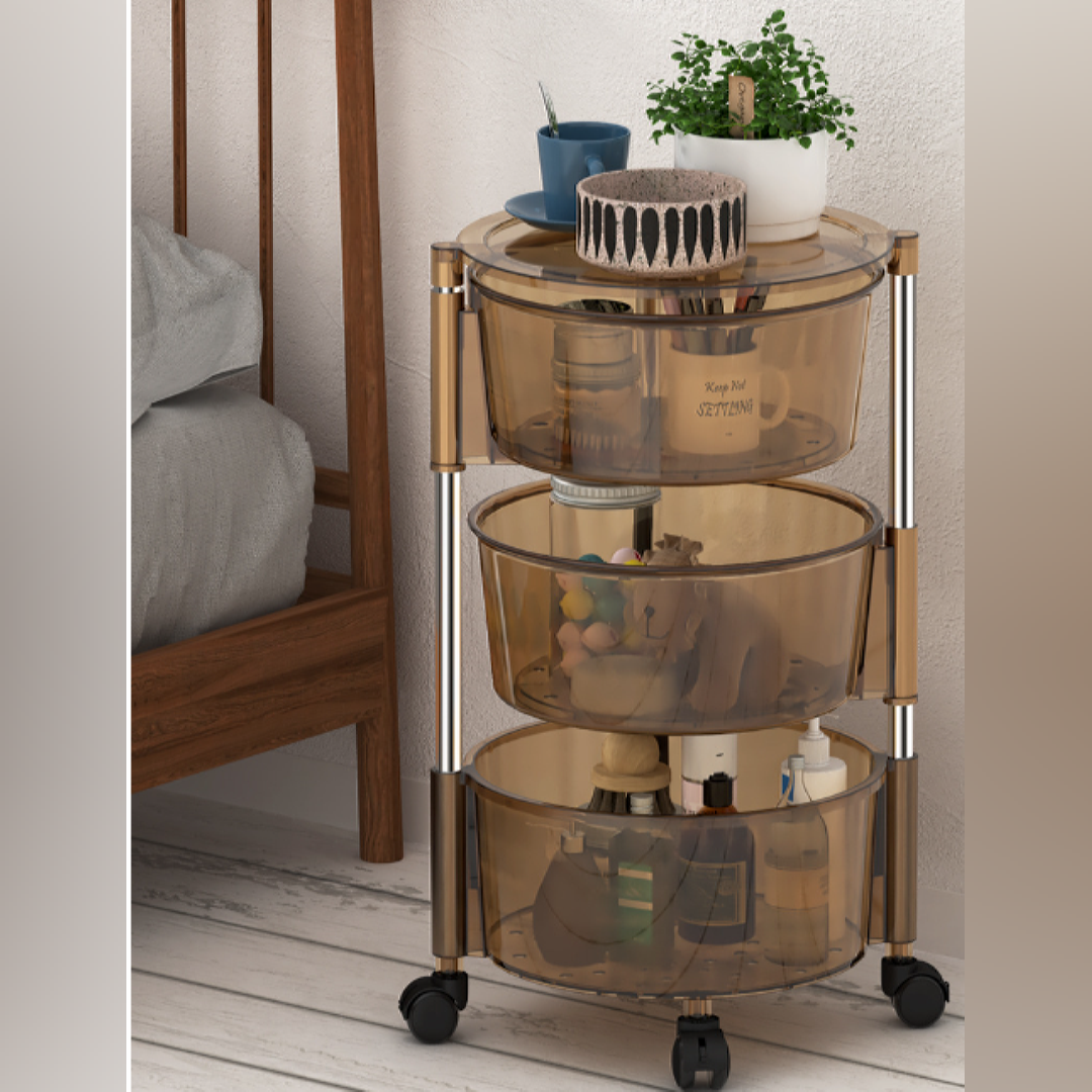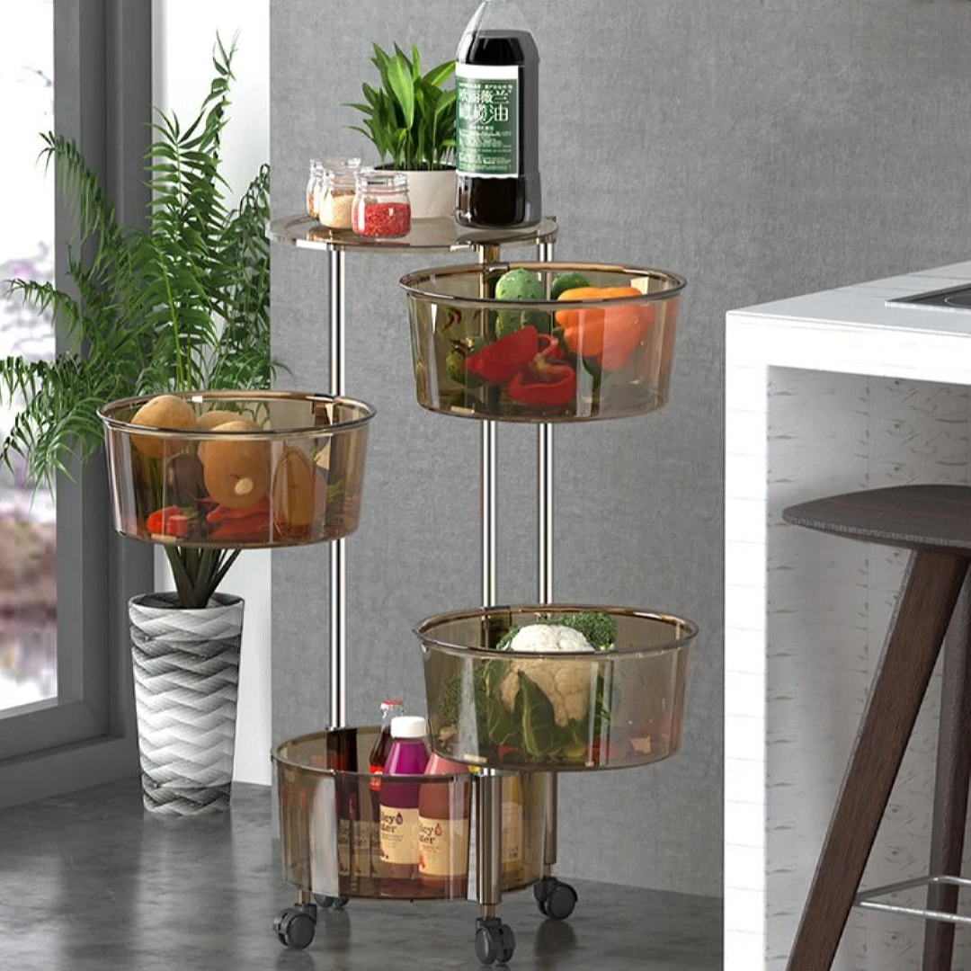Rotating Storage Rack Round Shape Rolling Organizer Cart Rotating Vegetable Storage Trolley