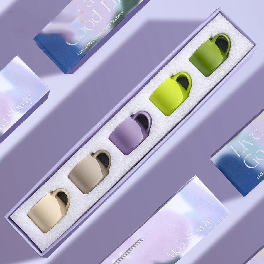 ?Rainbow-Inspired Colors?Start your day with a burst of color. Our set of ceramic mugs features five vibrant hues inspired by the beauty of a rainbow, adding a cheerful touch to your morning routine.