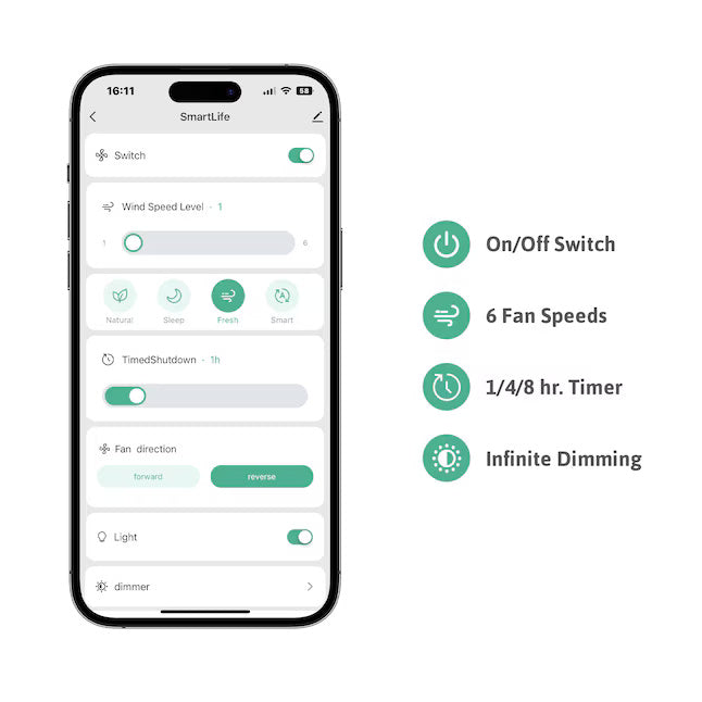 Stay cool and connected with this modern 3-blade smart ceiling fan. Control it by remote, phone app, or Alexa/Google Assistant. Its reversible DC motor keeps you cool in summer and warm in winter, while the dimmable 22W LED light (3000-6500K, 1-100% brightness) features a built-in memory function-so it remembers your last setting even after power off. With 6 speeds, a quiet design, auto shut-off timer, and stylish propeller blades, it blends comfort, efficiency, and elegance for any space.