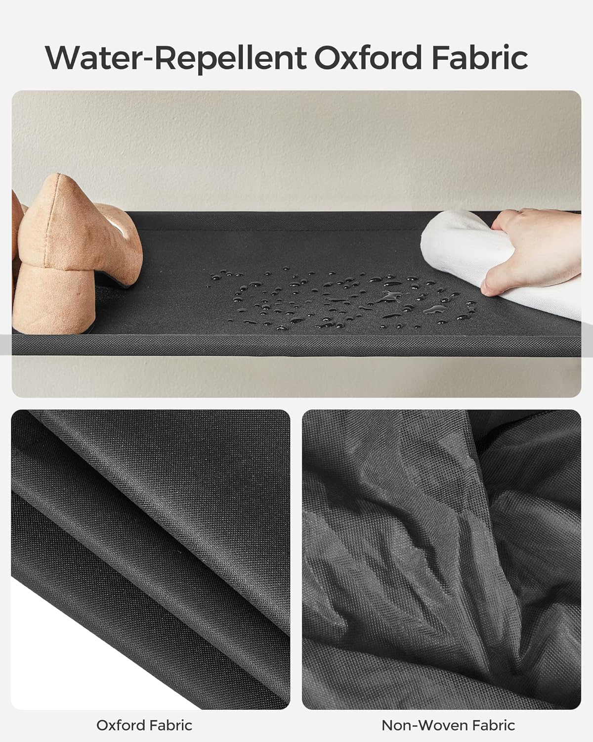 [Sturdy & Durable] The metal frame of this shoe organiser is sturdy. Made of quality, water-repellent Oxford fabric, the shelves with a 10 kg load capacity each are durable and easy to clean