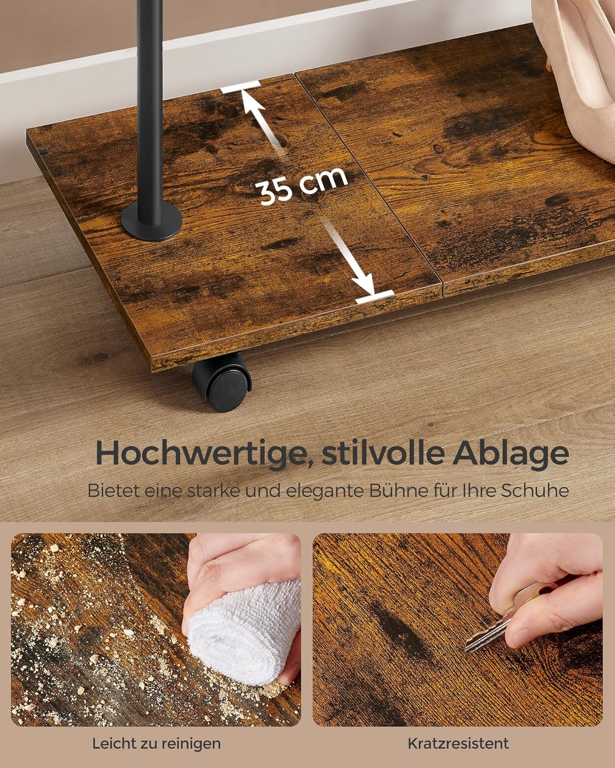 [Strong Construction] The sturdy steel coat rack can hold up to 30 kg, while the chipboard shelf can hold up to 20 kg. You can safely hang your winter coats and store heavy boots