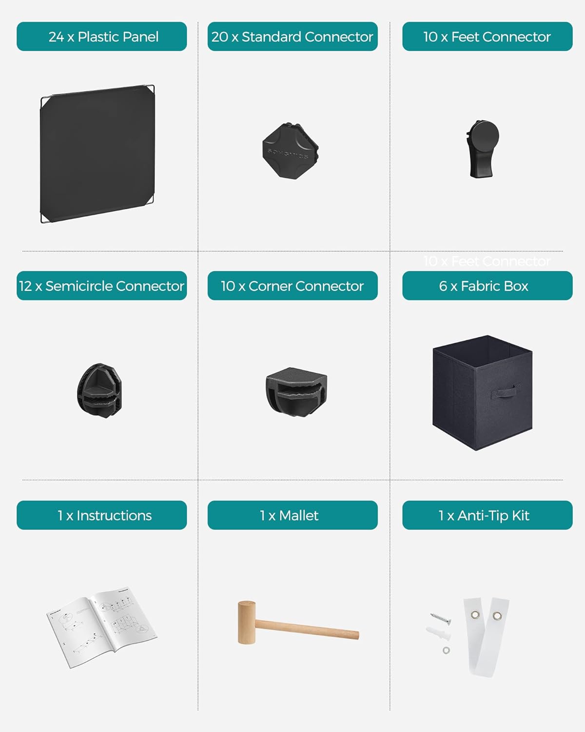 [Thoughtful Details] The corner and semicircle connectors ensure that the cabinet has smooth edges instead of awkward edges, giving it sleek lines and saving the space it occupies. The anti-tip kit provides added safety