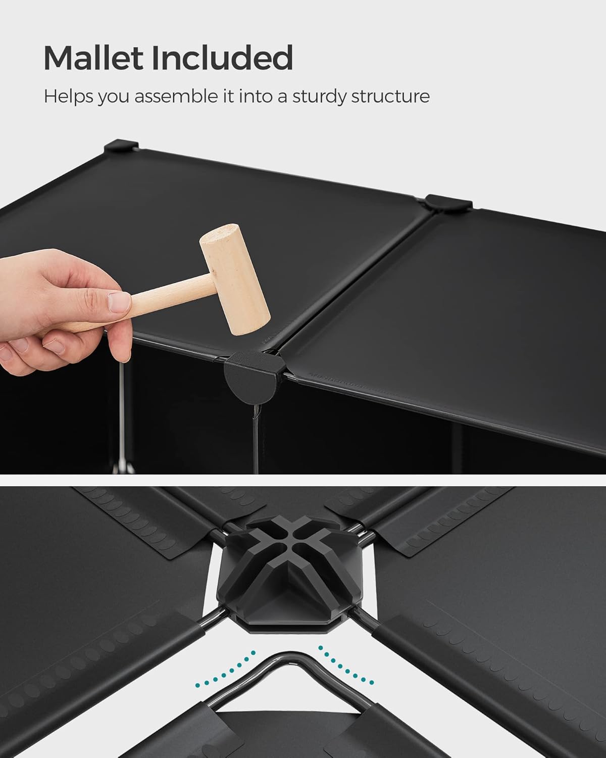 [Sturdy and Strong] The PP plastic panels with metal frames are interlocked with ABS plastic connectors, enabling each cube to hold up to 22 lb (10 kg). Each box made of 80 g/mý non-woven fabric and 2 mm thick cardboard can hold up to 11 lb (5 kg)