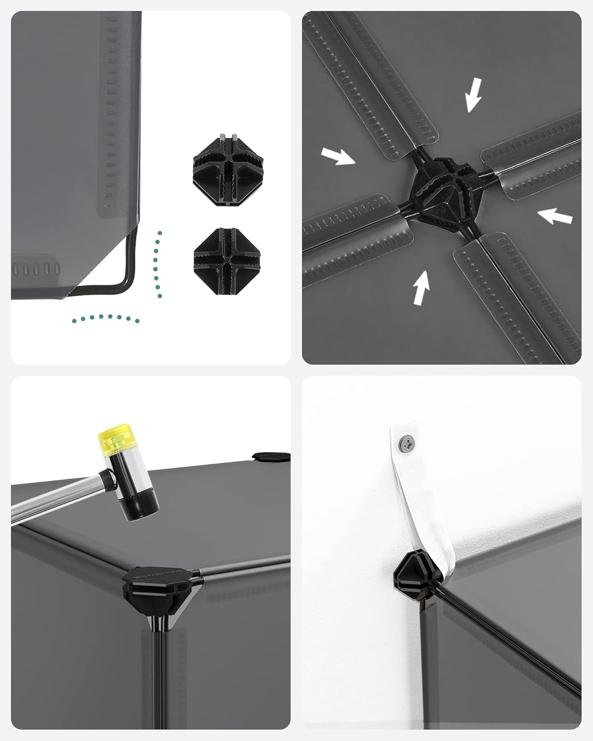 [Sturdy Construction] Robust plastic panels with an integrated metal frame form a sturdy unit with the connectors made of durable ABS plastic; easy to assemble, extremely stable, secured with an anti-tip kit