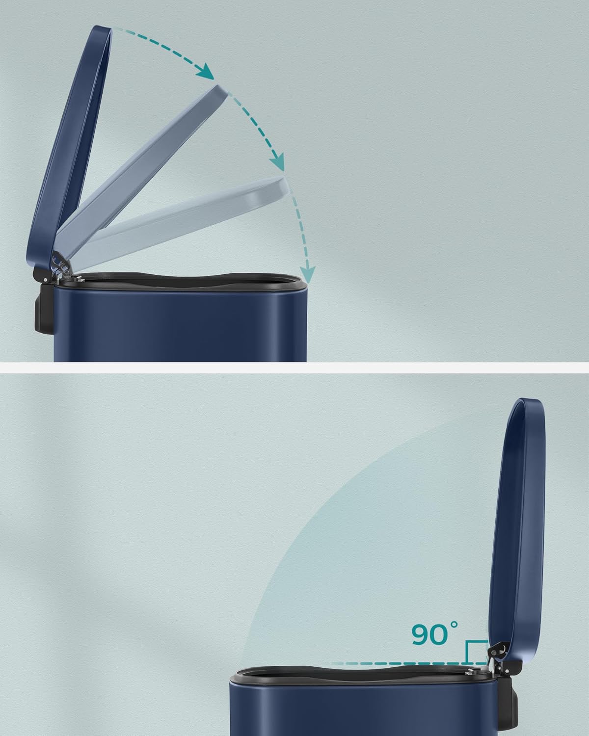 Easy to open: use the pedal to open the lid when you throw away dirt, or open the bin completely with one hand and the lid remains open. So you can also keep your hands free to clean the refrigerator