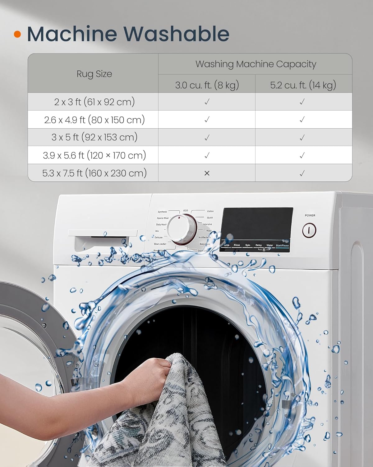 ?DURABLE AND MACHINE WASHABLE?Crafted from premium materials, this machine-washable area rug can withstand extended use. Remarkably, it retains its soft texture even after multiple washes, providing consistent comfort over time