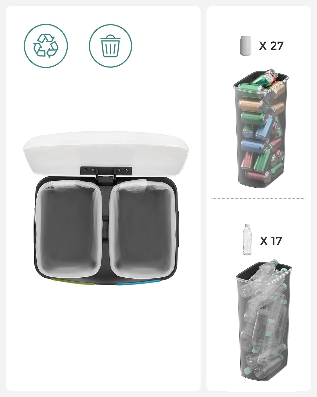 A real blessing for your kitchen: the bin does not have to look like rubbish; thanks to its elegant white colour and the simple look, this waste bin from Songmics will be an eye-catcher in your kitchen