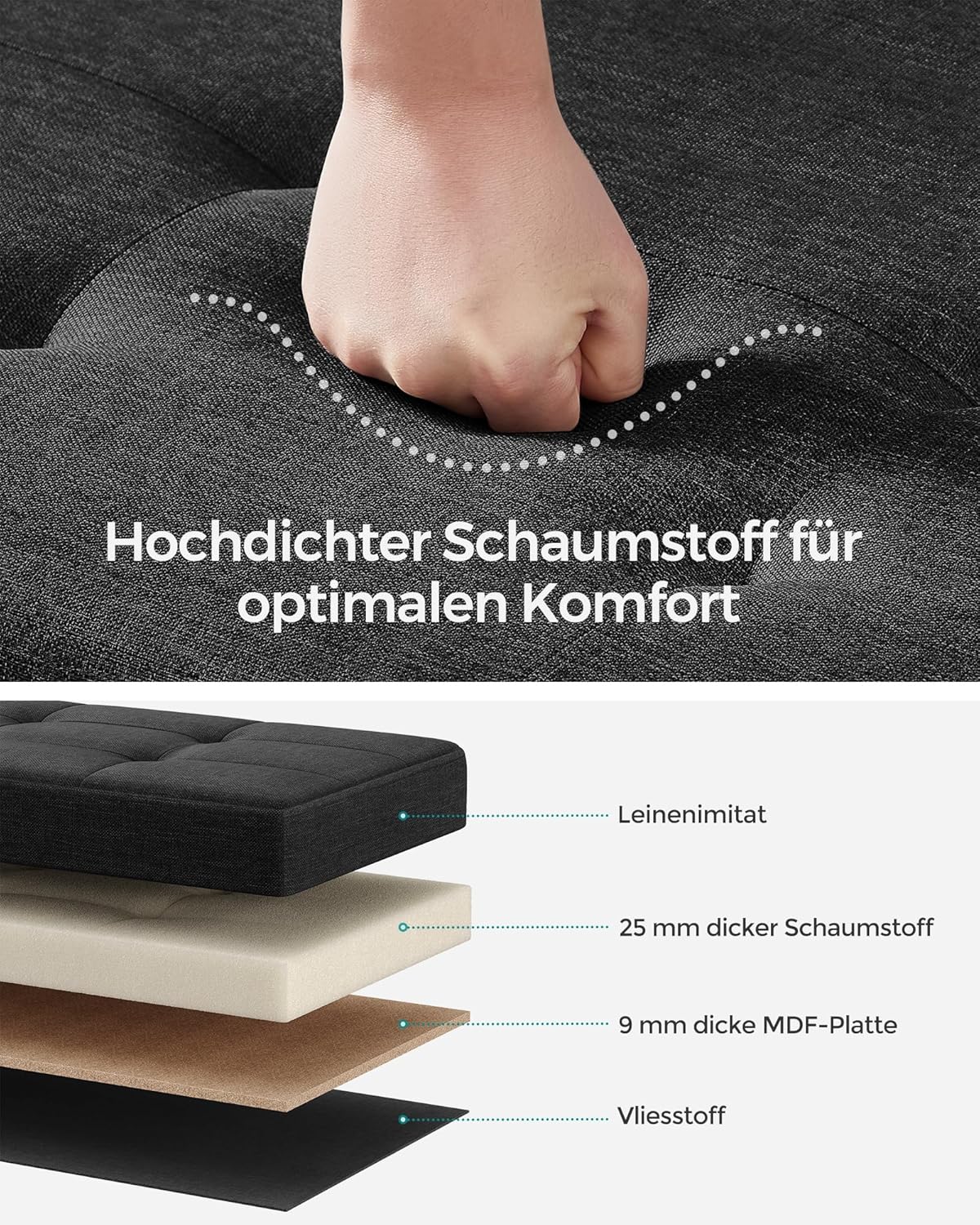 Elegant design and high seating comfort: the stool has a chic faux linen surface with quilted design and brings style to your room. The double layer fabric and highly elastic foam ensure long-lasting seating comfort