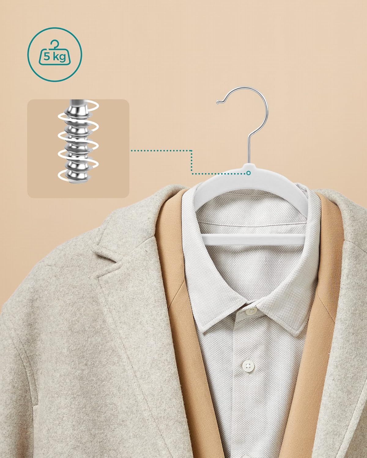 [Slim yet Sturdy] Made of durable ABS plastic, these clothes hangers are slim but very strong; each coat hanger has a max. static load capacity of 5 kg, so even heavy winter coats can be hung without problems
