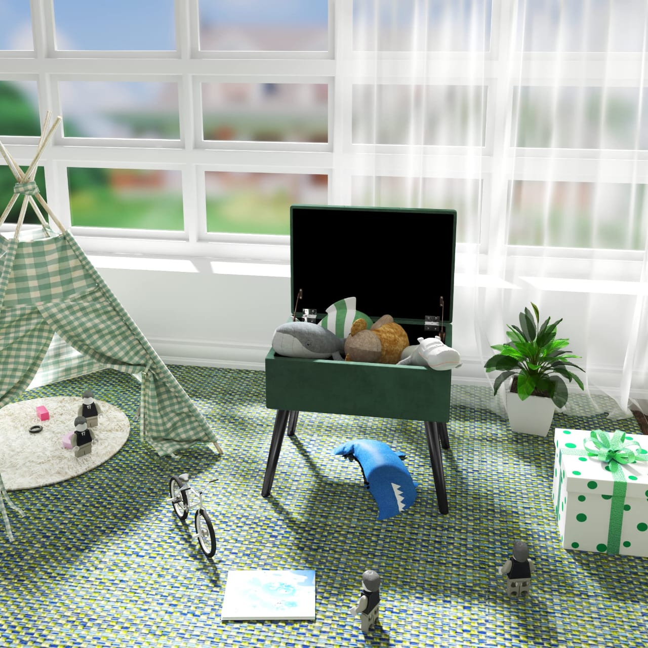 Storage Ottoman Chair Stool Dark Green Upholstered Footstool Velvet Bench Dressing Table Stool Pouf Couch Stool Wood Legs Removable Cover, 50x35x45cm(LxWxH)
