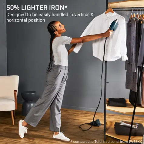 Discover the ultimate versatility in fabric care with the Tefal Duo Power, the innovative 2-in-1 device that functions as both a powerful steam iron and a convenient handheld garment steamer. It's the perfect all-in-one solution for all your ironing and steaming needs, from crisp shirts to delicate dresses.