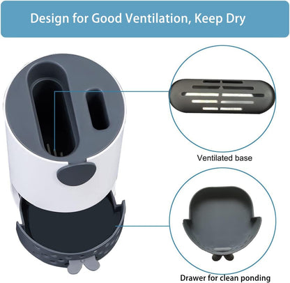 VENTILATED BASE: The double-layer toilet brush holder is more sturdy and ventilated. The flexible detachable base is drip-free, can keep your floor clean and neat. An idea toilet brush for bathroom