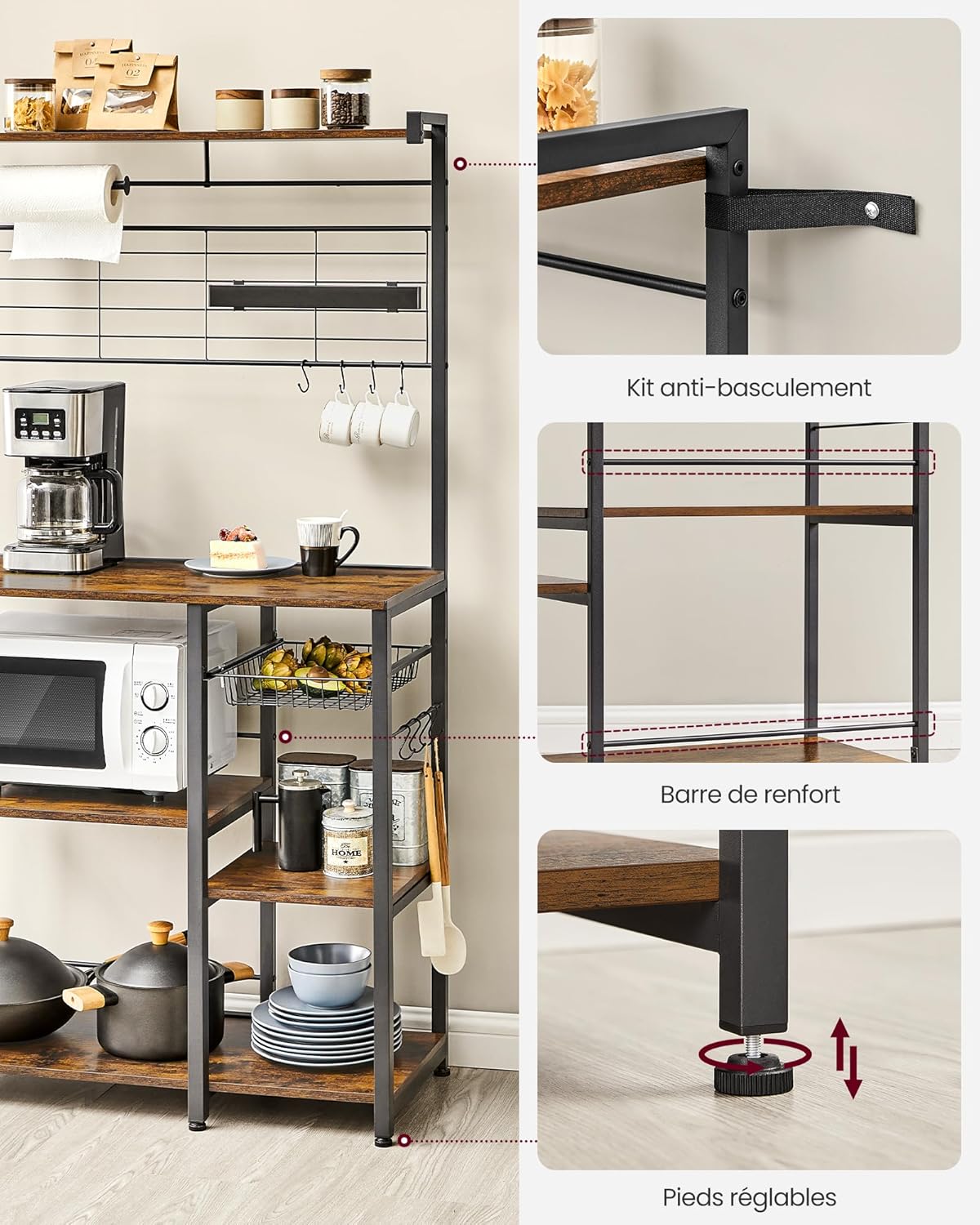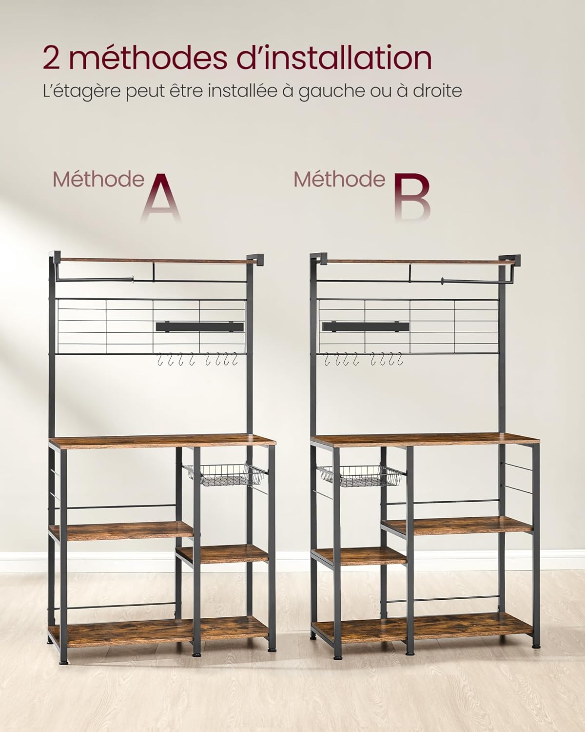 VASAGLE Bakers Rack with Magnetic Knife Holder KKS026B01