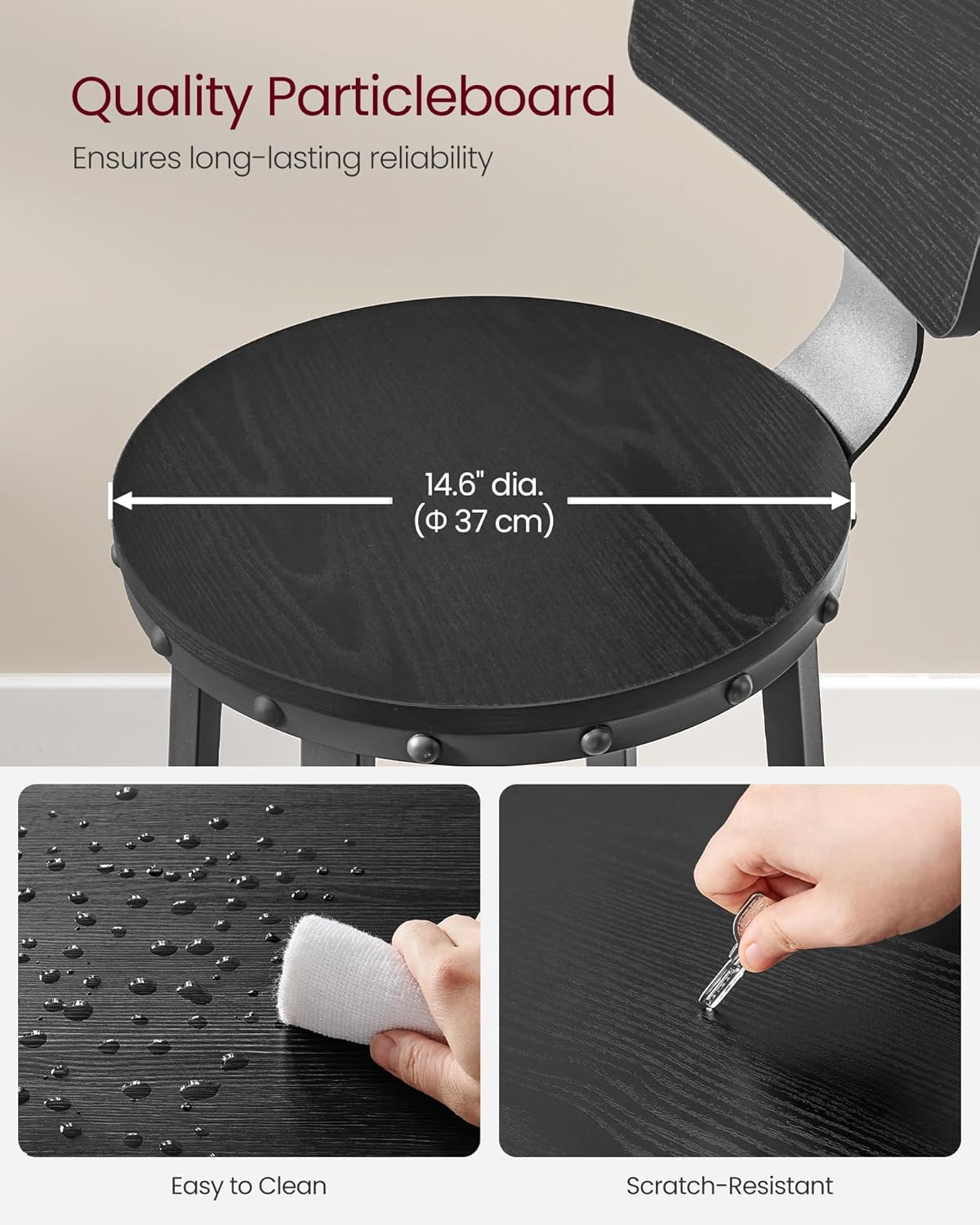 [Rustic Charm] Featuring different colors of wooden finish, matte black frame, and rivet decoration design, these bar height stools will elevate the aesthetic of your space-dining room, kitchen, or home bar