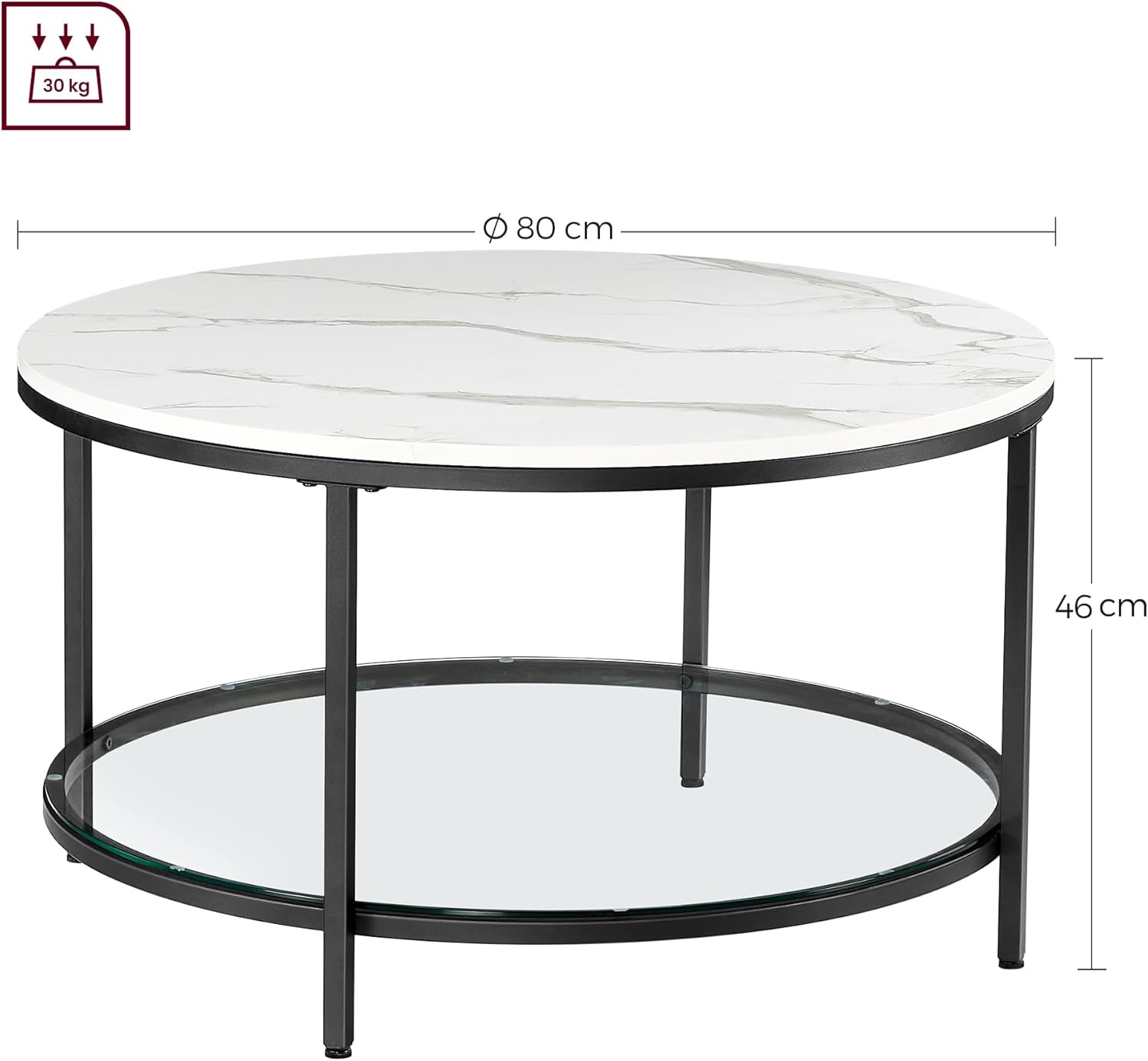 Modern style: A white marble effect tabletop, a bright tempered glass shelf underneath and timeless black steel legs - this perfect combination is designed for sophisticated living.