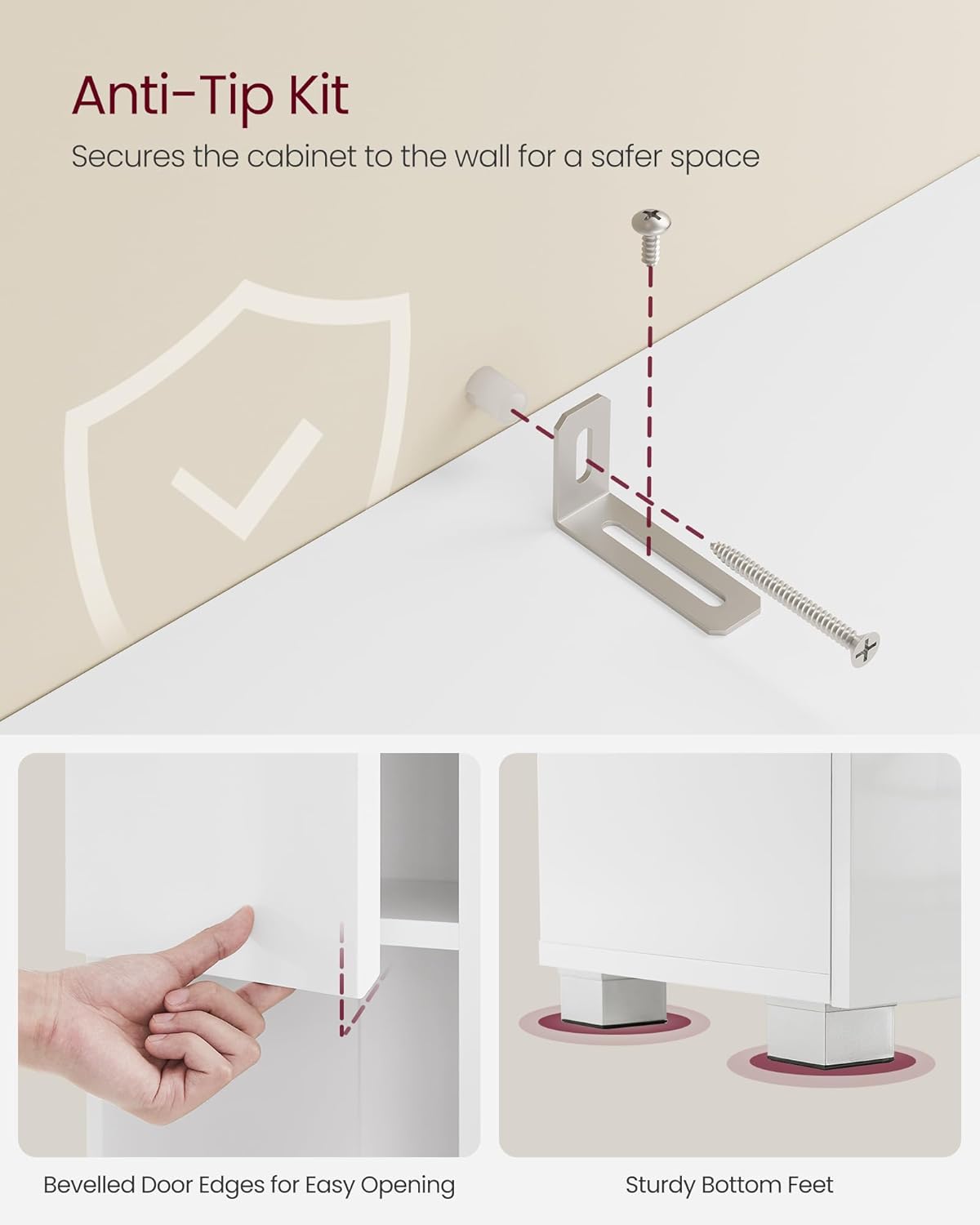[Elegant Modern Look] Designed with sleek lines and an elegant white colour, this bathroom storage unit effortlessly complements the decor of your bathroom, living room, or hallway